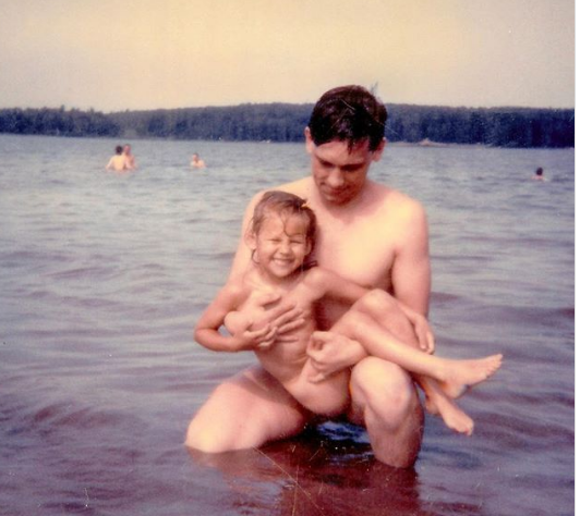 На нем она купается в водоеме. Кроме бывшей спортсменки, на снимке запечатлен мужчина, который держит ее на руках.