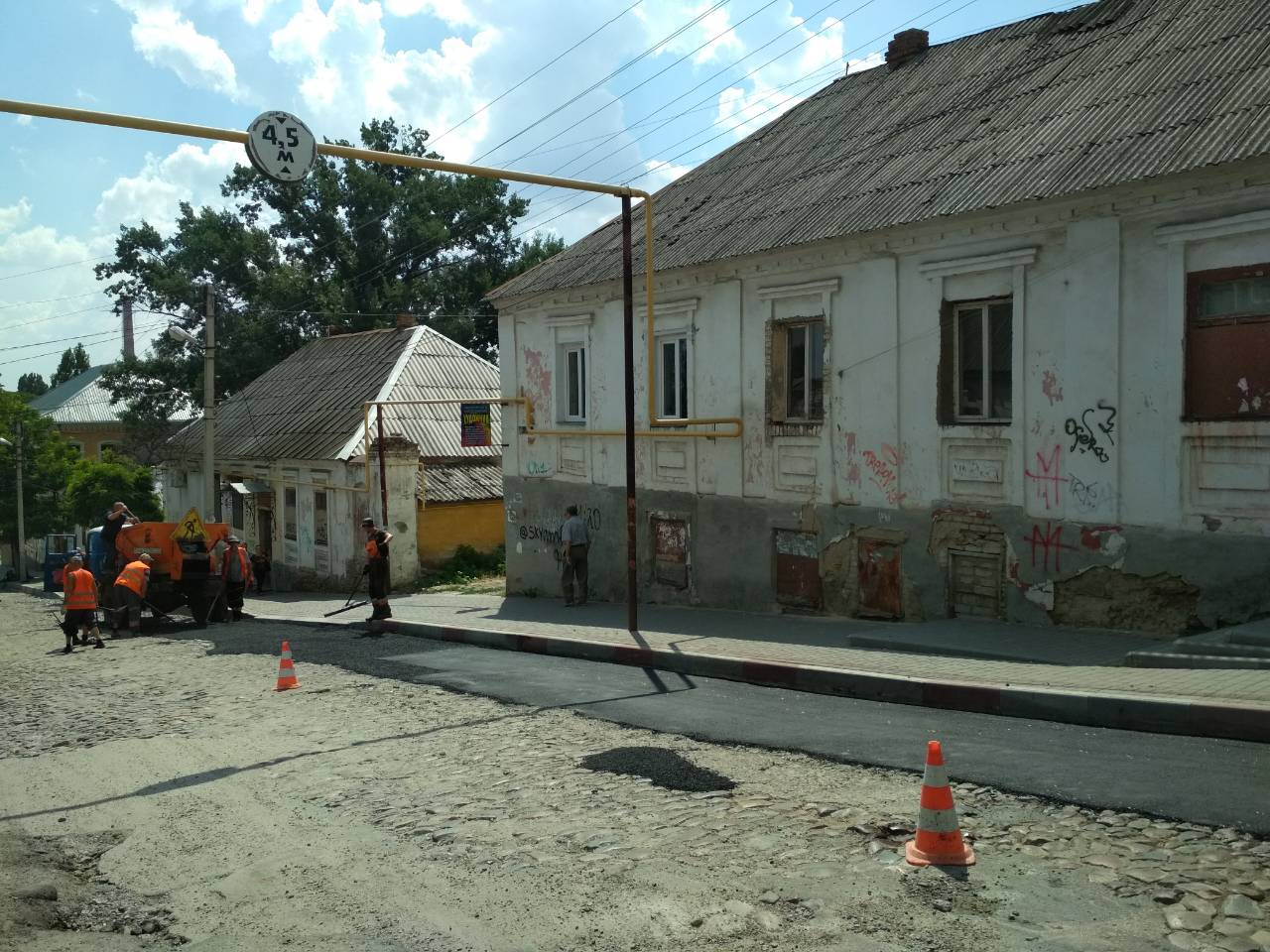 Ул. Университетская, точнее ее участок от пр. Б. Хмельницкого до ул. М. Грушевского (К. Маркса), - одна из немногих, где на сегодняшний день сохранилась старая брусчатка. В данный момент коммунальщики закатывают ее в новый асфальт.
