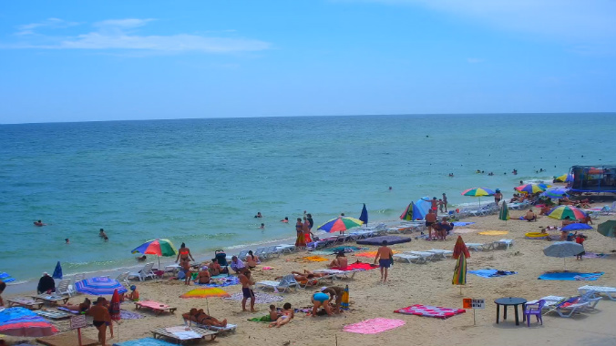 Пока над Мелитополем сходятся тучи, и гремит гроза. А в это время в курортной Кирилловке легкий ветерок и совсем небольшая волна никак не мешают отдыхающим наслаждаться погодой на пляже.