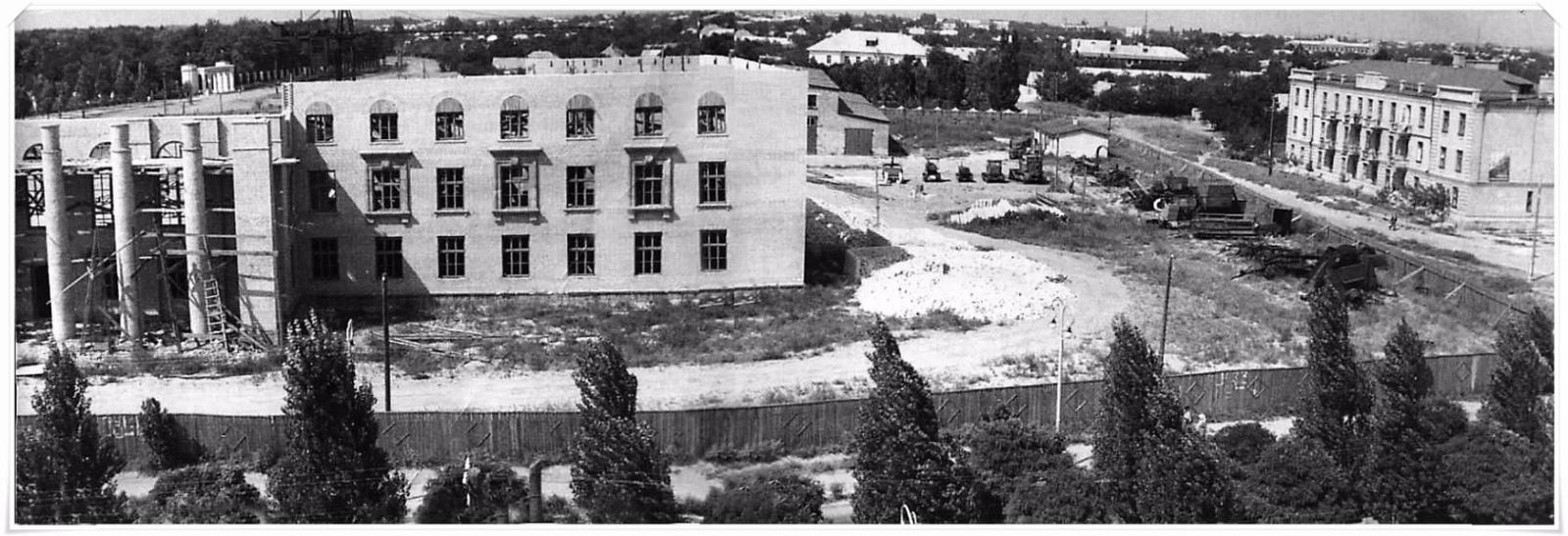 На фото запечатлено строительство здания Мелитопольского колледжа Таврического государственного агротехнологического университета (в прошлом сельхозтехникума). Свою историю учебное заведение ведет с 1931 года. Тогда его называли садово-огородным техникумом. До стоительства на проспекте Б. Хмельницкого техникум находился в здании, расположенном на ул. Гетманской (бывш. Ленина), где сейчас находится Мелитопольский отдел полиции.