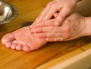 Летом на даче сложно отказать себе в удовольствии ходить босиком. Однако кожа стоп от этого, увы, грубеет. Вот простой и доступный способ сделать ваши пяточки мягкими (особенно эффективной процедура будет после бани): тщательно смажьте мозоли или всю стопу маслом, наденьте хлопчатобумажные носки и ложитесь спать. С утра размягченную кожу можно будет убрать пемзой.