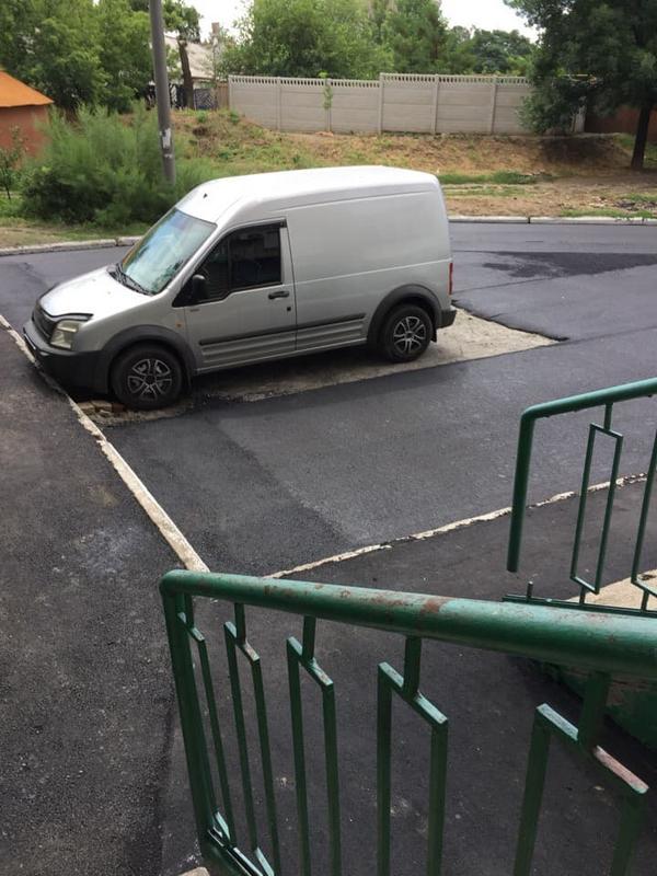 В соцсети появилось курьезное фото ремонта асфального покрытия во дворе одного из домов в центре Мелитополя. Коммунальщикам пришлось заасфальтировать дорогу вокруг машины, которую не пожелал убрать владелец.