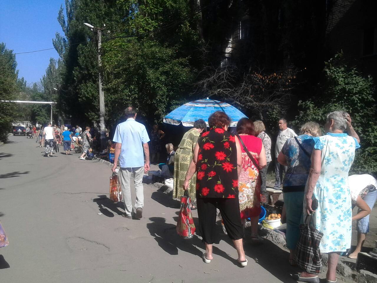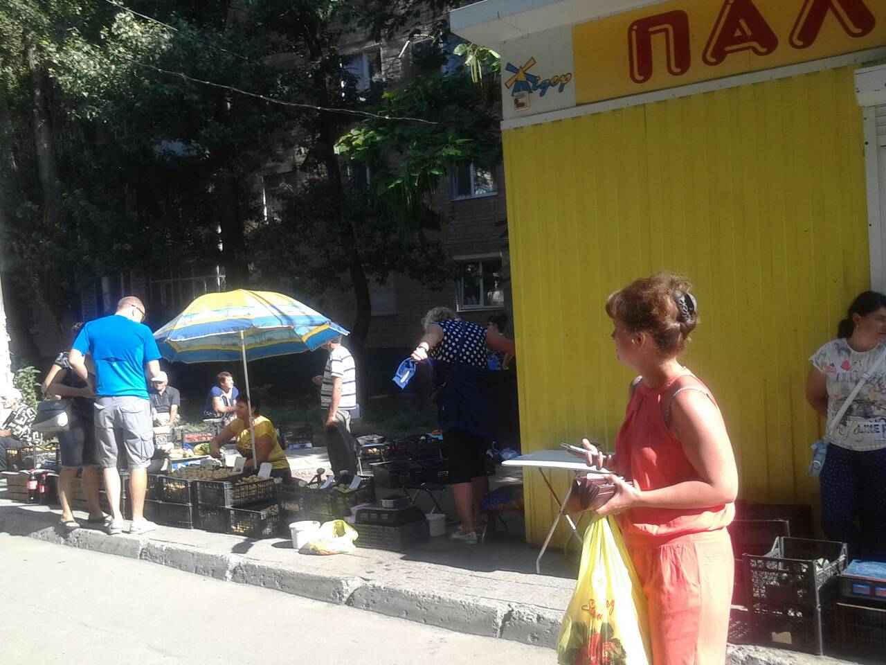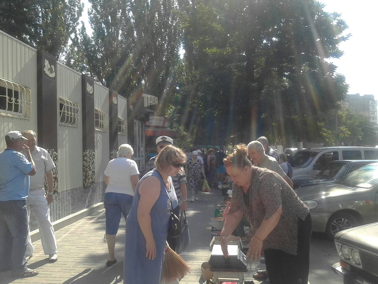 Сегодня возле "Таврической" торговой площадки было многолюдно. Традиционную субботнюю ярмарку перенесли на рынок Ломоносова, однако, места там хватило не всем. Нет места и на торговых рядах внутри "Таврической", поэтому продавцы установили свои столики, ящики и ведра вдоль тротуара и принялись предлагать свой товар многочисленным покупателям.