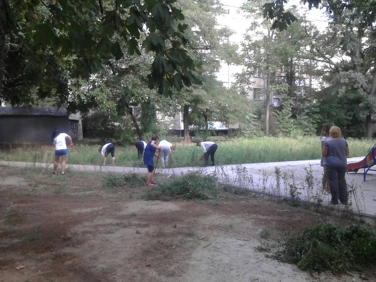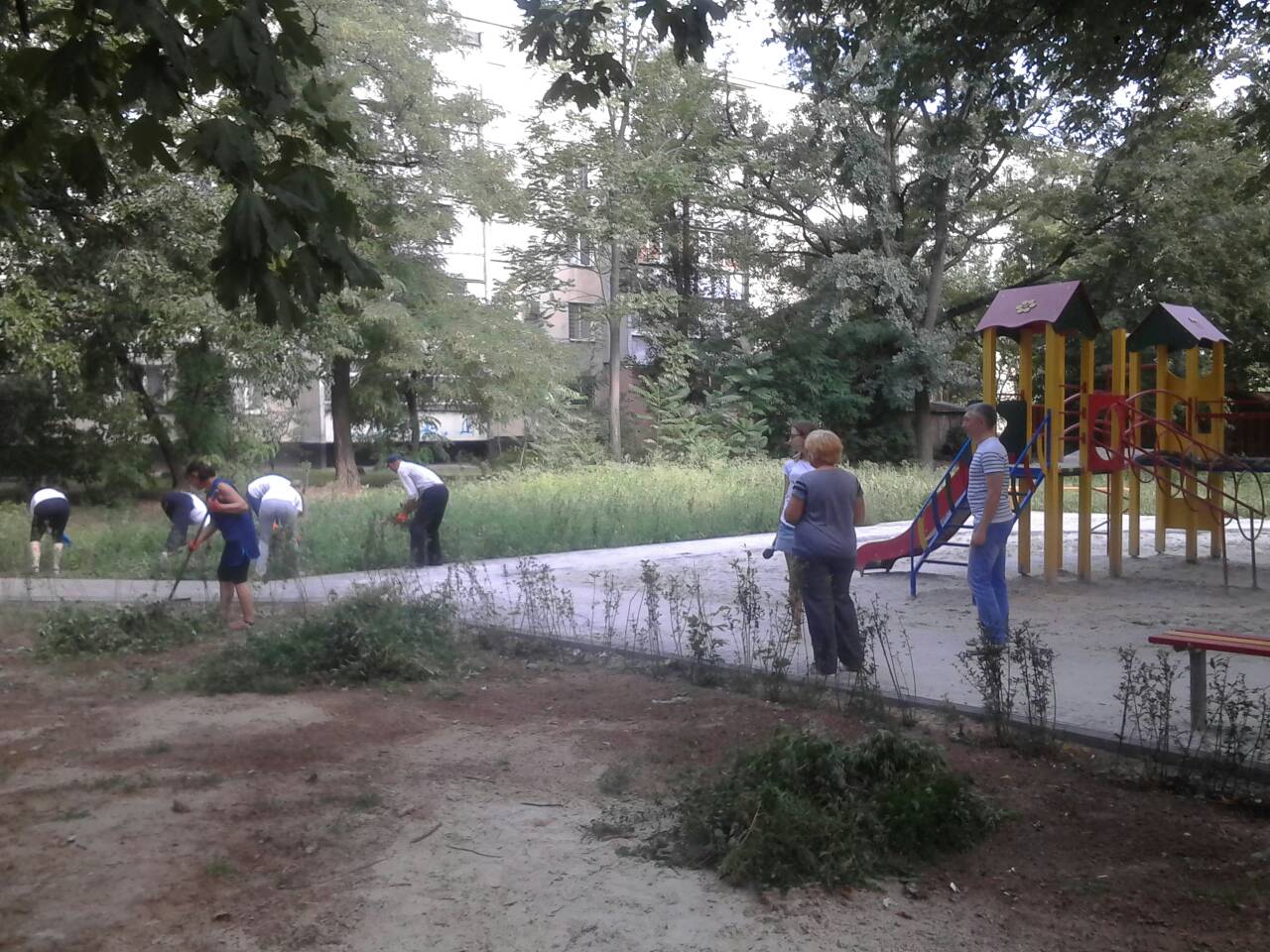 В рамках акции «Дыши свободно» преподаватели и технические сотрудники экономико-гуманитарного факультета Запорожского национального университета в Мелитополе очистили от сорняков участок вокруг детской площадки, расположенной на территории вуза.
