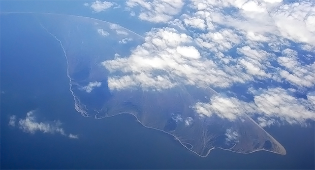 Остров-хамелеон, меняет не только сезонные краски, но и свою форму. В жаркий период попасть туда можно по суше. С приходом осенних и весенних штормов узкий перешеек, соединяющий остров с материковой частью, затапливает водой.