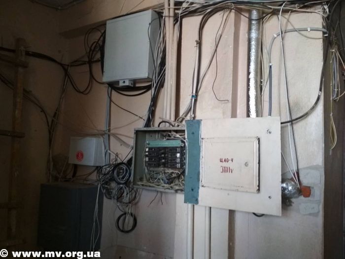 На седьмом, последнем, этаже с потолка и стен свисают провода, электрощиты стоят открытыми, а на первом этаже под лестницей что-то скрывается за закрытой дверью – размещать комнаты под лестничными пролетами в местах массового скопления людей правилами пожарной безопасности также запрещено.