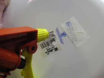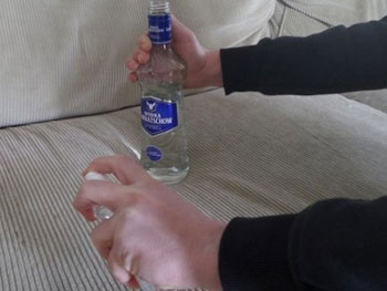 Используйте ткань, смоченную водкой, чтобы оттереть любой клей, который остался под наклейками или этикетками.
