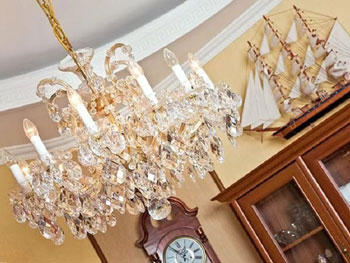 Распылите спрей на люстру, где она висит, используя смесь из четырех чайных ложек водки и одной воды. Положите ткань или простыню по люстру, чтобы падающие капли не забрызгали пол. Это сделает очистку вашей люстры суперпростой.