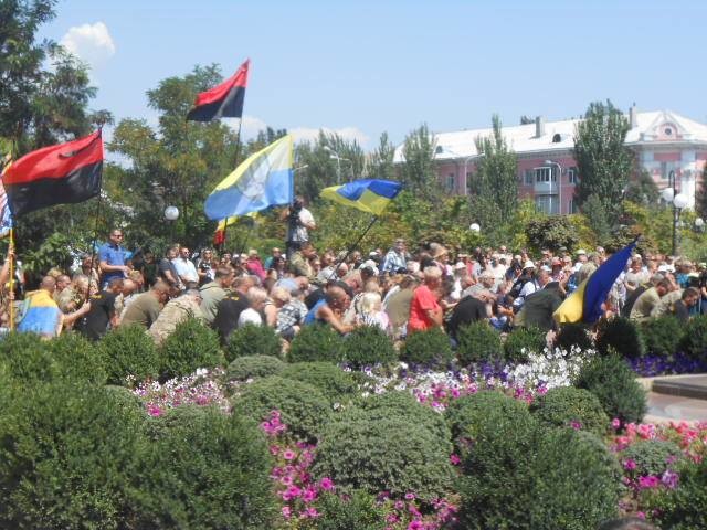 В городе Бердянск Запорожской области у здания исполкома проводили в последний путь активиста и ветерана АТО Виталия Олешко (позывной "Сармат"), которого застрелили 31 июля.