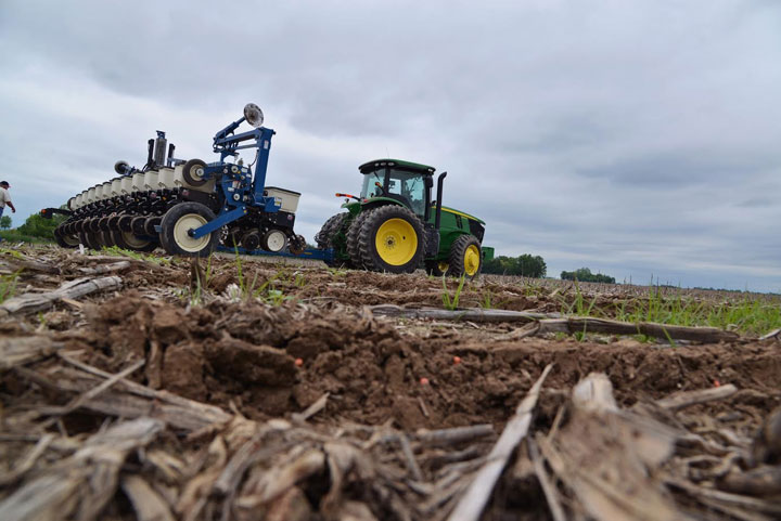 Использовать технологию «ноу-тилл» Александр Мовчан начал в 2010 г. «Ноу тилл» в переводе означает «не пахать». Система нулевой обработки почвы - современная система земледелия, при которой почва не обрабатывается, а её поверхность укрывается специально измельчёнными остатками растений - мульчей. В классической обработке земли во время пахоты в землю перемешиваются пожатвенные остатки, а поле зачищается от сорняков. Но механическое возделывание почвы приводит к эрозии, а по обыкновению и к деградации почвы. Совсем другое дело – «ноу-тилл». Тут ненарушенная структура грунта к севу является важным компонентом и помогает выращивать урожай.