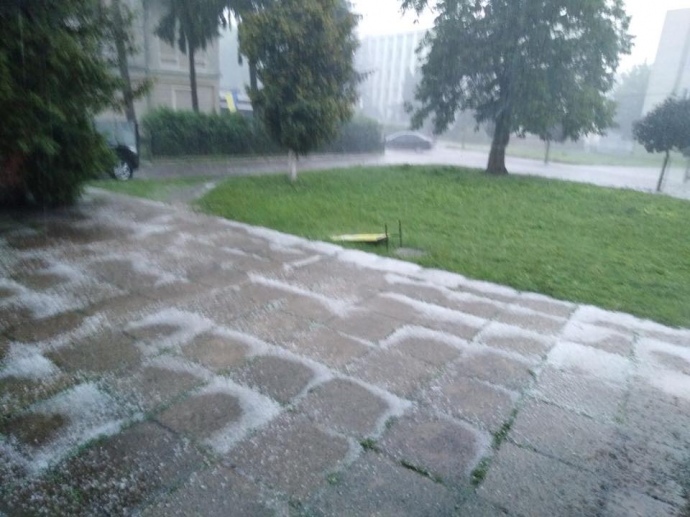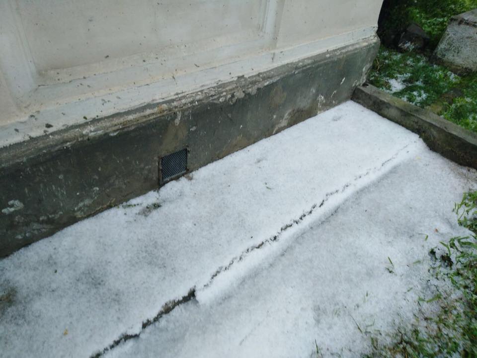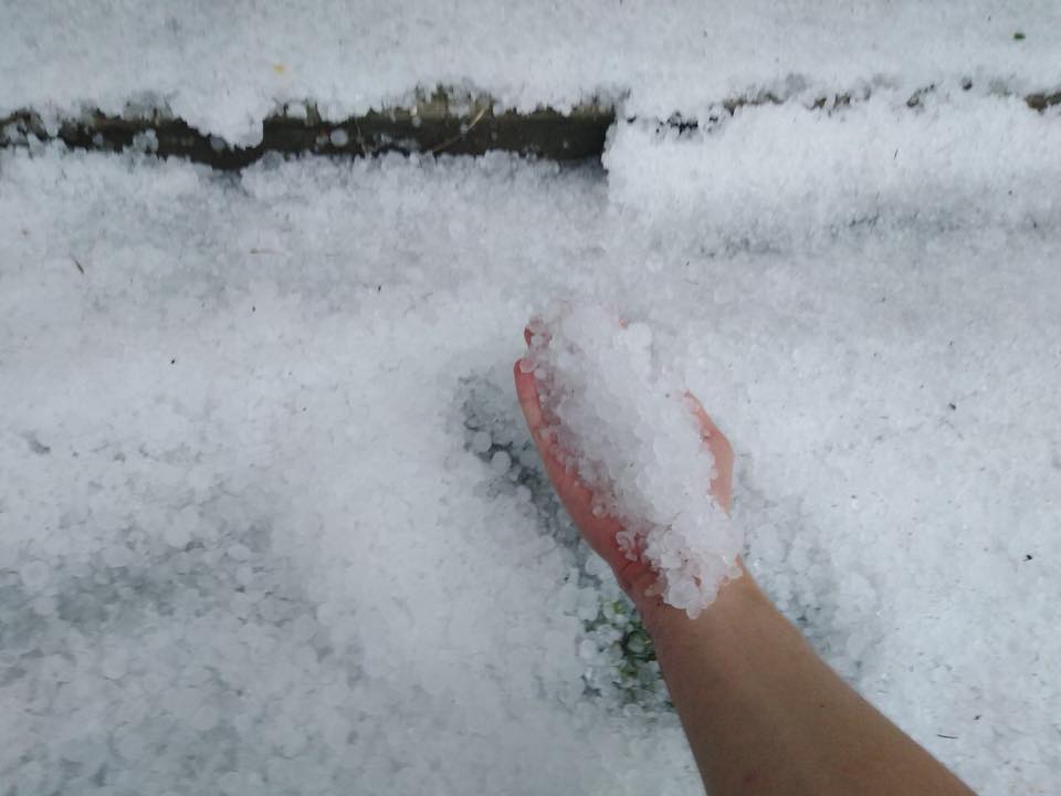 По фото видно, что град плотным слоем усеял улицы и на время превратил лето в зиму.