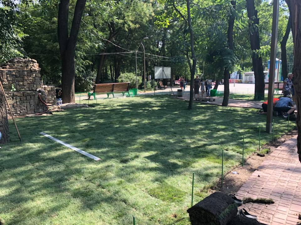 По словам Олега Андреевича, на данный момент уложена только первая часть газона - 320 кв. м. Еще планируется положить около 700 кв. м. Денежные средства на укладку газона были выделены из бюджета паркового КП. Сколько конкретно - не сказал, в Интернете цена за погонный метр стартует от 50 грн.