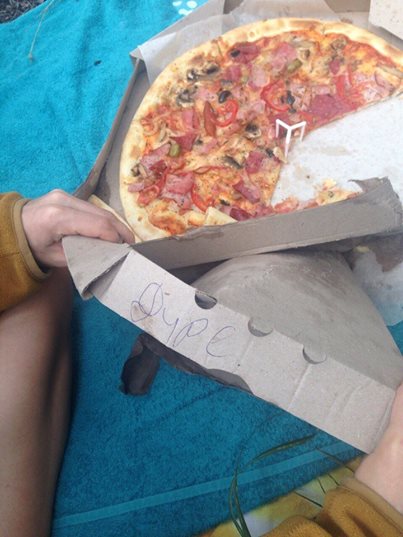 Жительница Запорожья заказала в одном из заведений города пиццу. В скором времени пиццу ей доставили, но на коробке было написано слово «Дуре». Горожанка не поняла, почему на коробке написана эта надпись.