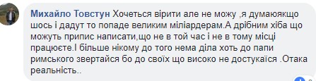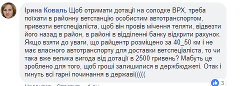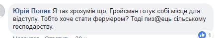 «Заберите у него штурвал из рук. Потому, как только он начинает трогать в экономику – сразу получается социализм… Последний перл Гройсмана – программа поддержки аграриев. Та самая, где мы будем доплачивать за корову, за сарай для коровы и вообще всем тем, кто считает себя фермером или аграрием… Я зарабатываю сам. Честно и ответственно плачу налоги. На оставшееся после налогов покупаю в том числе и продукты сельхозпроизводства. И что получается? Из уплаченных мною налогов условный частный домовладелец (даже не предприниматель) получает дотацию на корову. И потом я покупаю у него молоко и снова плачу по сути ему за ту же корову», — пишет блогер Петр Андрющенко. «Это всего лишь лозунги от «директора рынка». Чем ближе к выборам, тем «слаще» лозунги», «Извечный и любимый политиками способ подкупа избирателей», — комментируют его пост в Facebook.