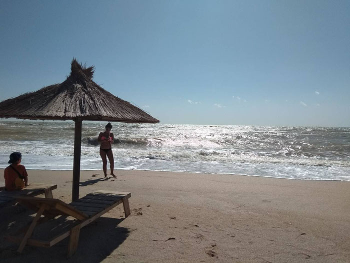Обычно многолюдные в выходные дни пляжи опустели - находится на берегу неприятно в ветренную погоду и отдыхающие находят себе другие развлечения. Желающих купаться в бушующем море также почти нет, редкие смельчаки решаются зайти в воду.