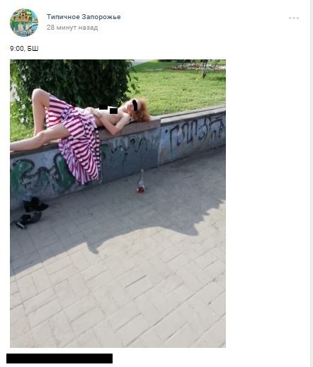 В Запорожье в социальных сетях появилось фото полуобнаженной девушки, которая была замечена спящей на бульваре Шевченко.