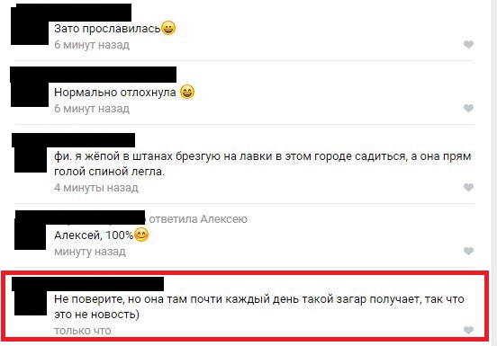 Комментаторы восприняли данный случай с юмором. Некоторые пишут, что девушка просто загорает, а рядом стоит «средство для загара», другие же говорят, что девушка загорает так уже не первый раз, поэтому это не новость.
