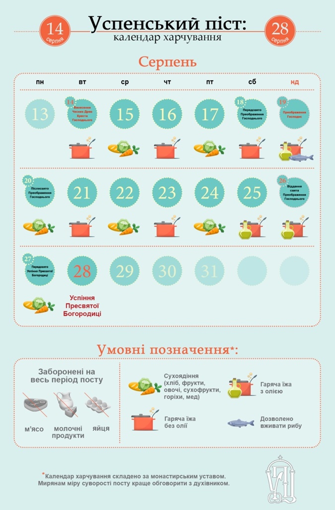 Как сообщает «Православное наследие Украины на Святой Горе Афон», этот пост является строгим и длится две недели, до праздника Успения Пресвятой Богородицы – 28 августа.