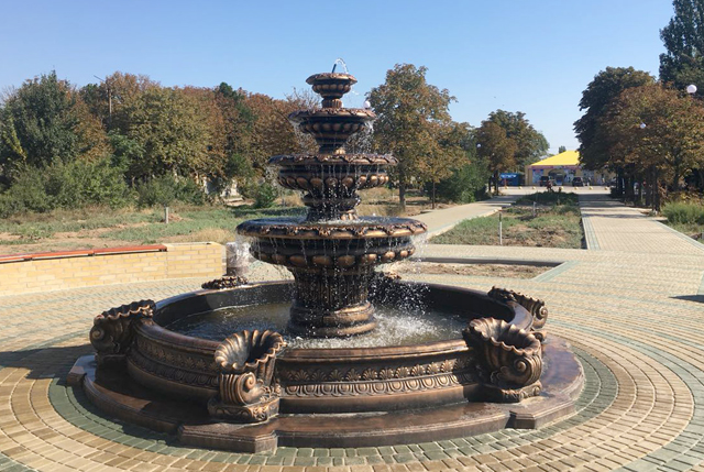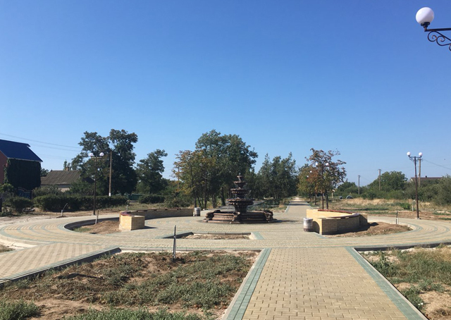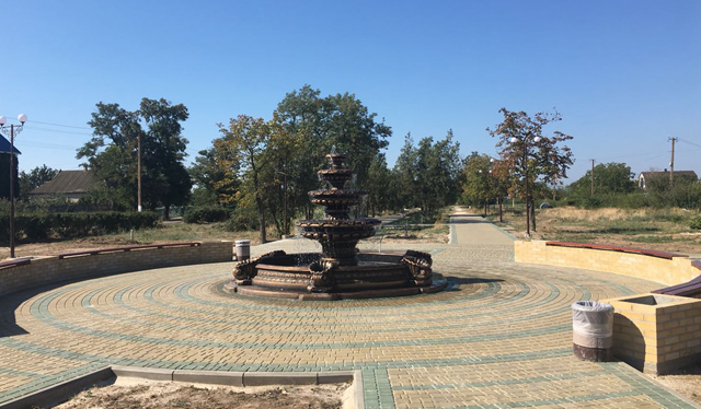 По проекту реконструкции аллеи в с. Азовском, расположенной возле Дома культуры № 2, уже выложены тротуарные дорожки и установлен пятиярусный фонтан. На площадке вокруг фонтана построены лавочки для отдыха. Сам фонтан уже работает, однако, газоны вокруг него и вдоль аллеи будут озеленять после окончательной реализации проекта реконструкции.