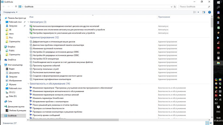 Создание папок, которое называется активацией «режима бога», на работе компьютера не сказывается. Это лишь инструмент, который позволяет получить доступ к полному списку настроек ПК.