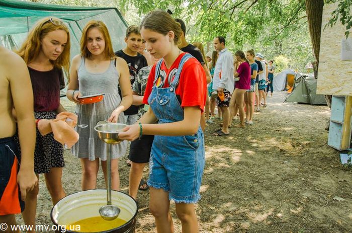 Душ был эстремальный: любящие гигиену сами тащили наверх ведро с водой с помощью лебедки. Но, кроме душа, предостаточно часов было посвящено плаванью по Днепру своим ходом или на байдарках, особо удачливые даже ныряли с аквалангом. Играли не только в футбол, пионербол, но и дрались на деревянным мечах, саблях, стреляли из лука.