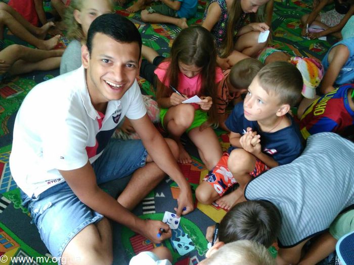 12 августа участники языкового лагеря могли пообщаться с волонтером Alex Pelensky, США, Нью-Йорк, который проводит языковой лагерь вместе с учителями ООШ-4 г. Мелитополя в рамках Дня друзей.