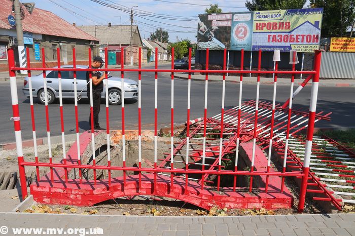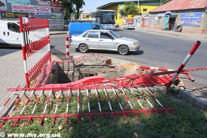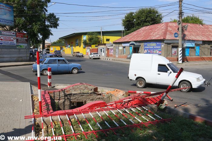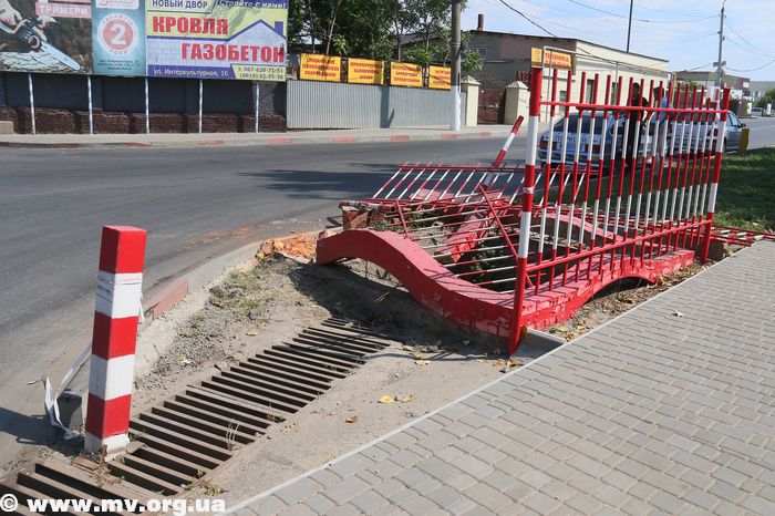 Сегодня снова разнесли ограждение пескоуловителя ливневой канализации, что на перекрестке ул. Интеркультурной (Дзержинского) и Дмитрия Донцова (Профинтерна).