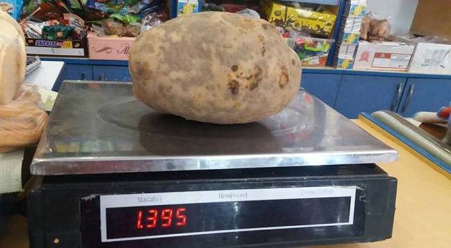 Отмечается, что огромный картофель-рекордсмен у хозяина из села Горское завесил на 1 кг 395 граммов.