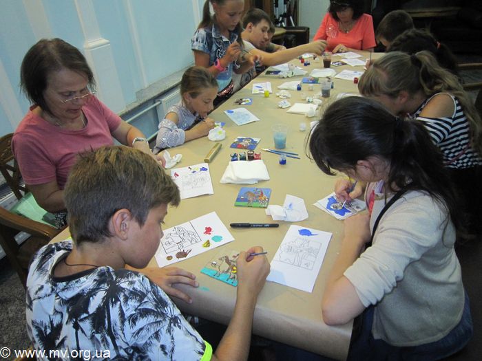 Переменками отдыха стали мастер-классы, которые подготовили взрослые. Не каждый из современных людей пробовал писать на бересте! А наши краеведы попробовали: в музее книгопечатания, расположенном на территории Верхней Лавры. Сюрпризом для них стал и мастер-класс живописи по стеклу: девочки рисовали княгиню Ольгу, мальчики – князя Владимира.