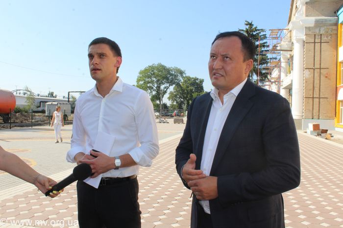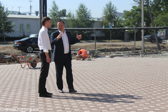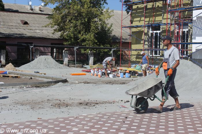 Помимо работ внутри здания, сегодня продолжается ремонт фасада и прилегающей к школе территории – двор выкладывается плиткой, готовится почва для укладки тротуара. Как заметил заместитель городского головы Иван Федоров, тротуарную дорожку проложат до самой Привокзальной площади, так как многие приезжают в школу на маршрутках.