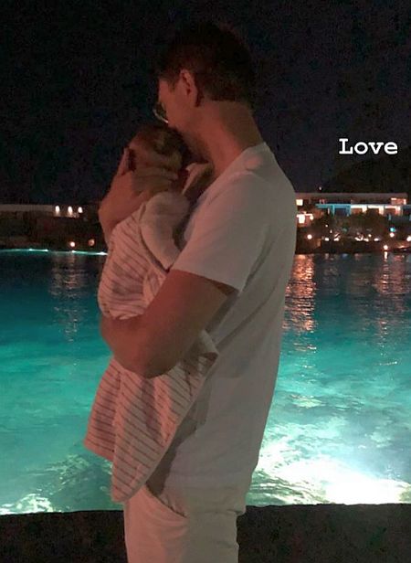 Фотографиями с отдыха поделилась в сети супруга министра, дизайнер Светлана Бевза. На снимках члены семейства наслаждаются отдыхом на европейском курорте, а Омелян позирует с дочерью на руках на фоне бассейна.