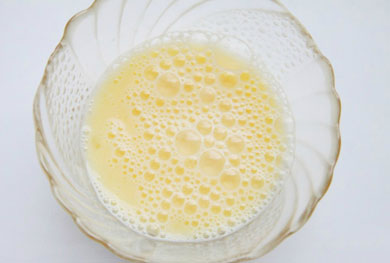 2. Взбиваем яйца с молоком и небольшим количеством соли. Яйца также можно смешать с мелконарезанной зеленью - это придаст блюду больше красок.