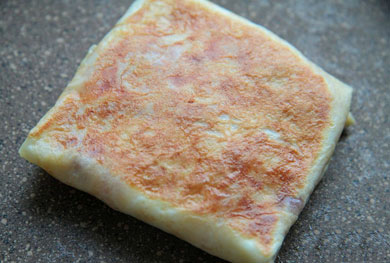 5. Обжариваем сначала одну сторону. Затем блинчик переворачиваем и поджариваем другую сторону. Таким же образом готовим второй «конвертик».