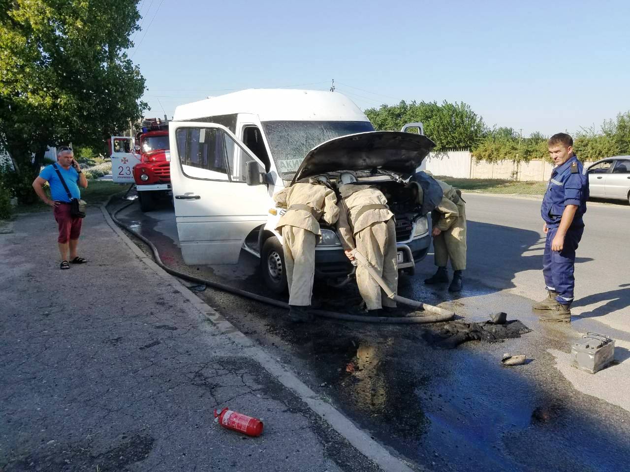 Горел микроавтобус «Mercedes Sprinter», совершавший рейсы между Мелитополем и Акимовкой. На момент возгорания в автомобиле находился только водитель, который быстро его покинул.