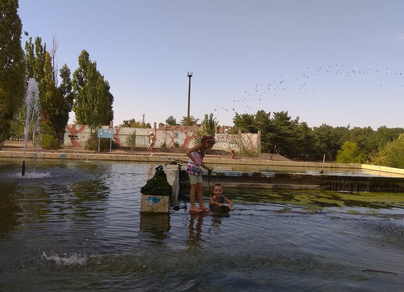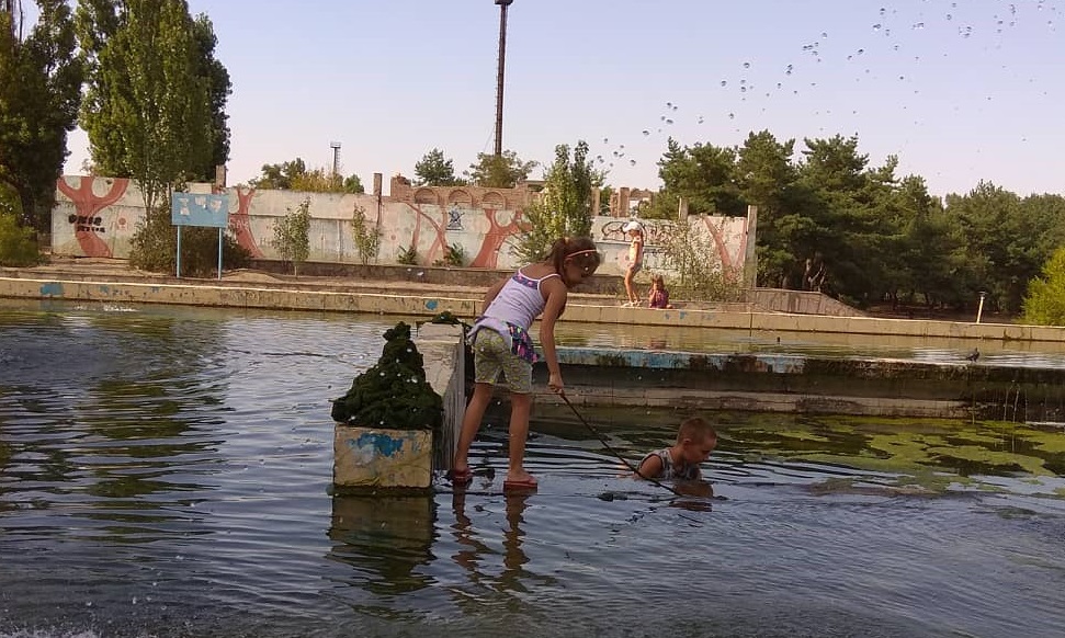 Двое детей на днях чистили каскад фонтанов в городе Энергодар.