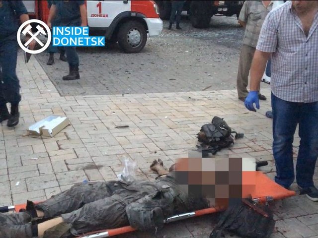 Кроме того, на одной из фотографий запечатлено тело человека в военной форме, по всей видимости, погибшего Александра Захарченко.
