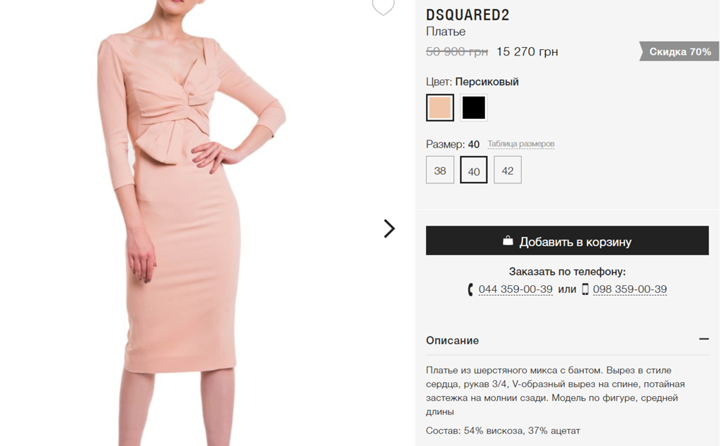 На сайте бренда платье, как у Ольги, сейчас стоит 15 тысяч гривен, со 70% скидкой. Ранее такая обновка обошлась владелице в 50 тысяч.