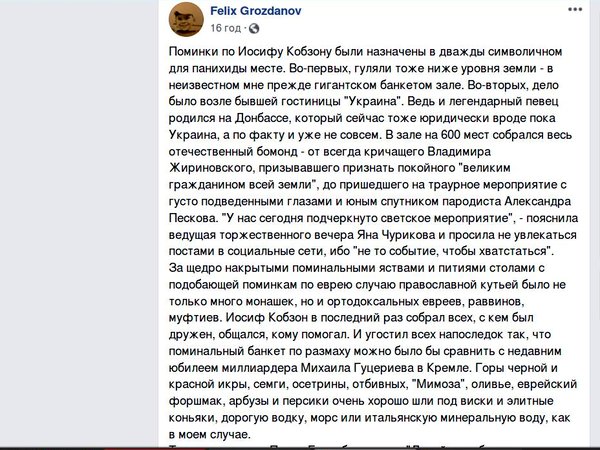 Об этом сообщают в Фейсбук, журналист Феликс Грожданов.