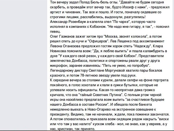 2 сентября в Москве прошли похороны главного голоса СССР Иосифа Кобзона. Поминки похорон певца отгуляли с размахом, которые можно было сравнить с банкетом в честь юбилея российского миллиардера, владельца британской компании GCM Global Energy Inc., которая добывает нефть в Азербайджане и Казахстане, Михаила Гурцериева.