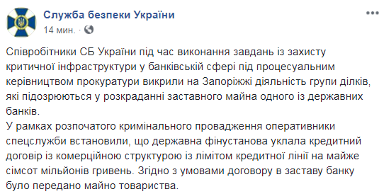 "По заключению профильных экспертов, государственному банку нанесен ущерб на почти миллиард гривен", – говорится в сообщении СБУ, которая уже открыла соответствующее уголовное производство.