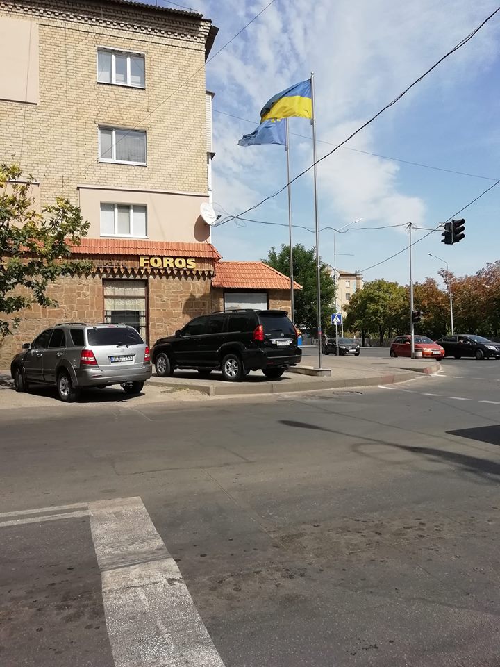 Возле ресторана «Форос», который находится на пр. Б. Хмельницкого, водитель внедорожника решил, что места на парковке для его крупногабаритной машины будет мало, и заехал прямо на тротуар.