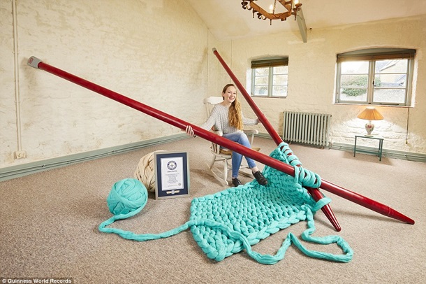 Британка Элизабет Бетси Бонд создала самую большую в мире вязальную иглу длиной 4,4 м.