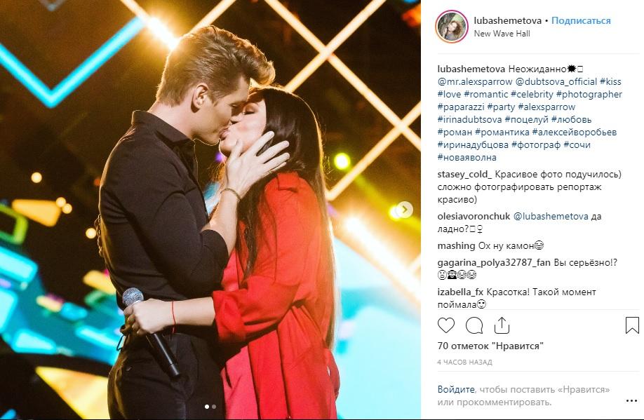 Алексей Воробьёв и Ирина Дубцова шокировали зрителей и гостей «Новой волны» французским поцелуем на сцене.
