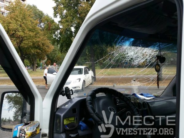 Здесь дорогу не поделили Opel Insignia и маршрутное такси, выполняющее перевозки из курортной Кирилловки в Запорожье.