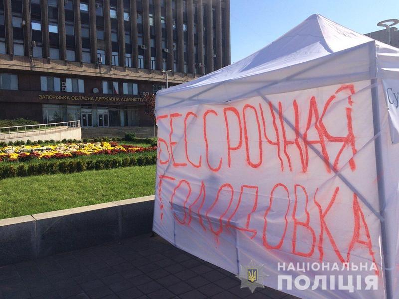 На площади возле Запорожской облгосадминистрации мужчина установил палатку и объявил о бессрочной голодовке из-за решения суда. Об этом сообщает пресс-служба Нацполиции.