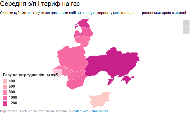 Тем временем при нынешнем состоянии дел Украина может похвастаться наибольшим количеством газа, которое можно купить на среднюю зарплату. Поэтому наши соседи, которым удалось отойти от советского прошлого и успешно реформировать экономику и у которых значительно более высокие средние заработные платы, за газ платят вдвое-втрое больше украинцев.