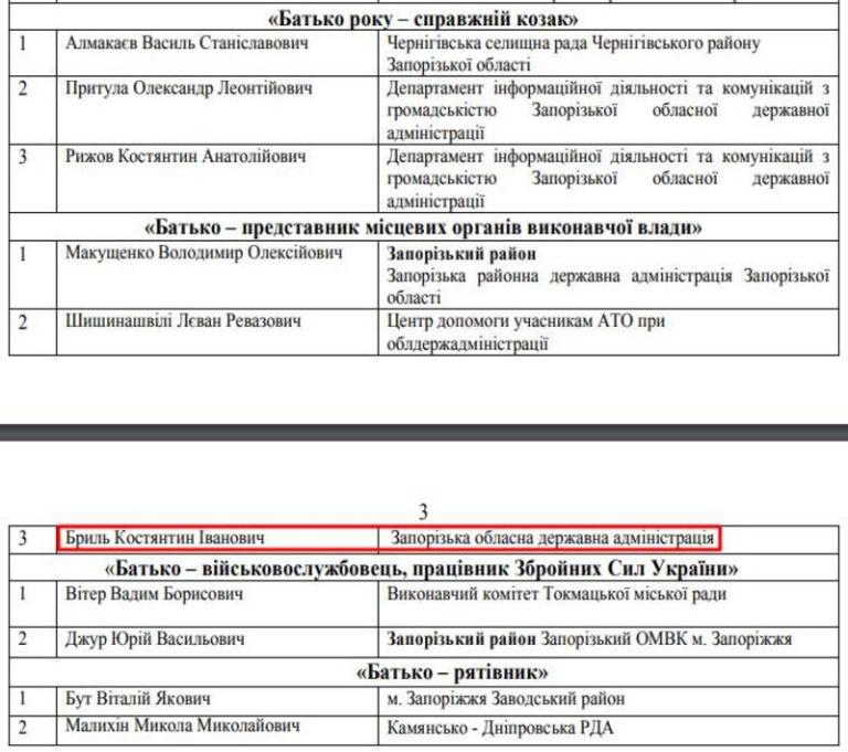 Среди победителей- известные запорожские активисты и деятели. Среди которых и Константин Брыль. Он победил в номинации «Отец- представитель местных органов испольной власти». Это вызвало неоднозначную реакцию у пользователей соцсетей из-за того, что Константин Иванович сам же и утвердил данный конкурс.
