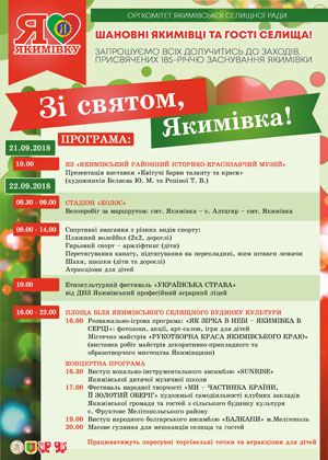 Праздник по случаю 185-летия основания пгт. Акимовка состоится 22 сентября. Для жителей поселка и гостей подготовлена насыщенная спортивная и концертная программа.
