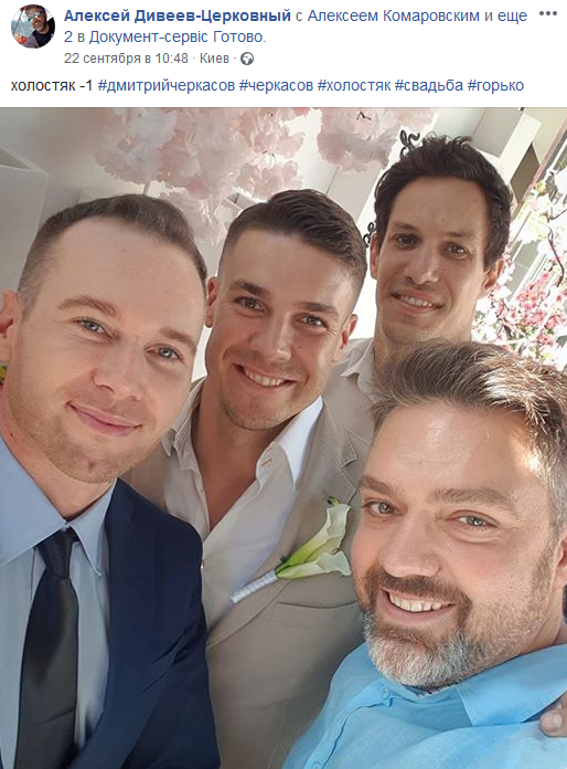 Телеведущий Алексей Дивеев-Церковный на своей странице в Facebook опубликовал первое фото с торжества.