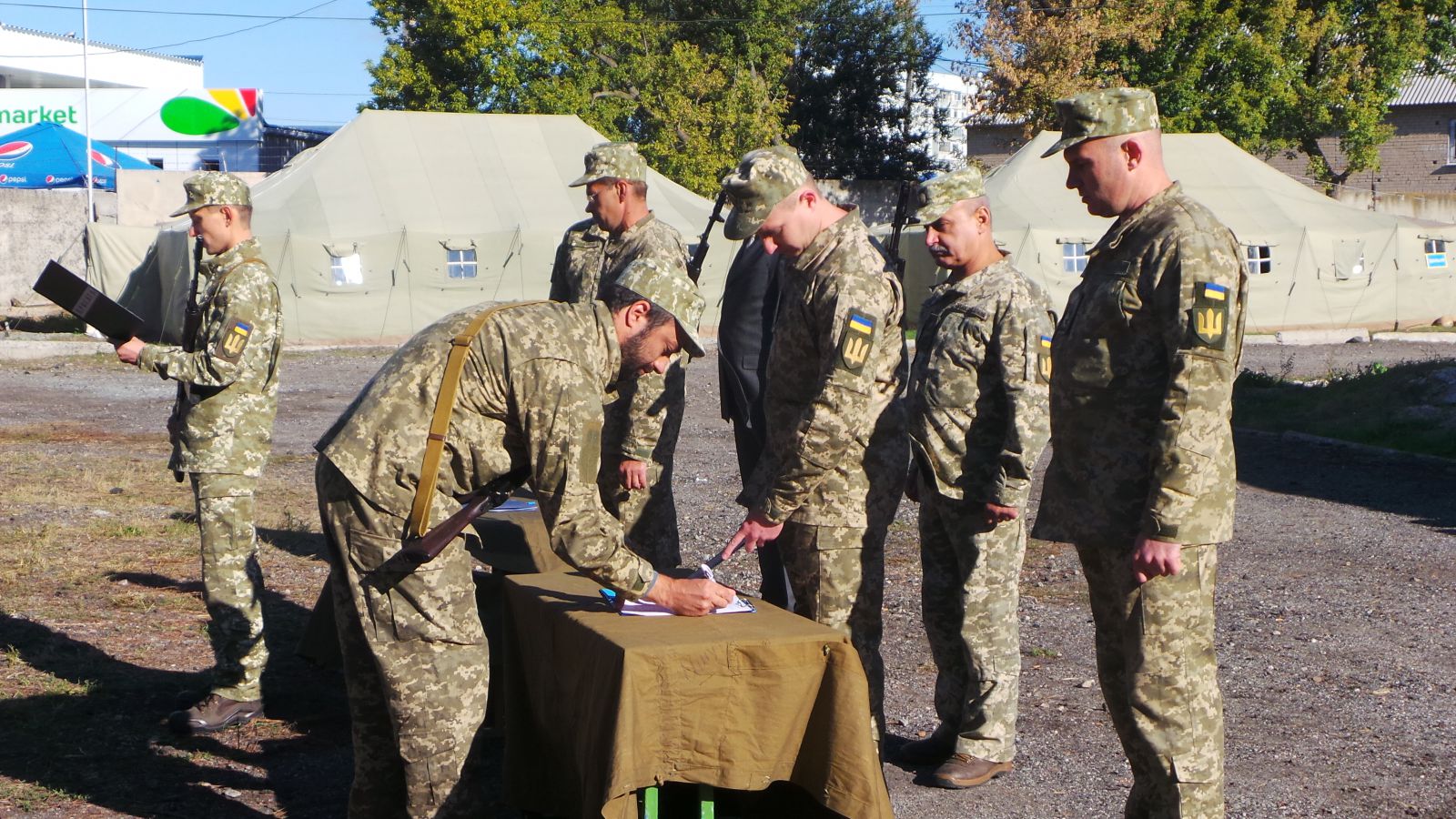 - Зараз проходять навчальні збори з резервістами територіальної оборони. Сьогодні приймають присягу ті резервісти, що не служили в українській армії, або не служили в армії взагалі, - говорит областной военком Юрий Трофименко.